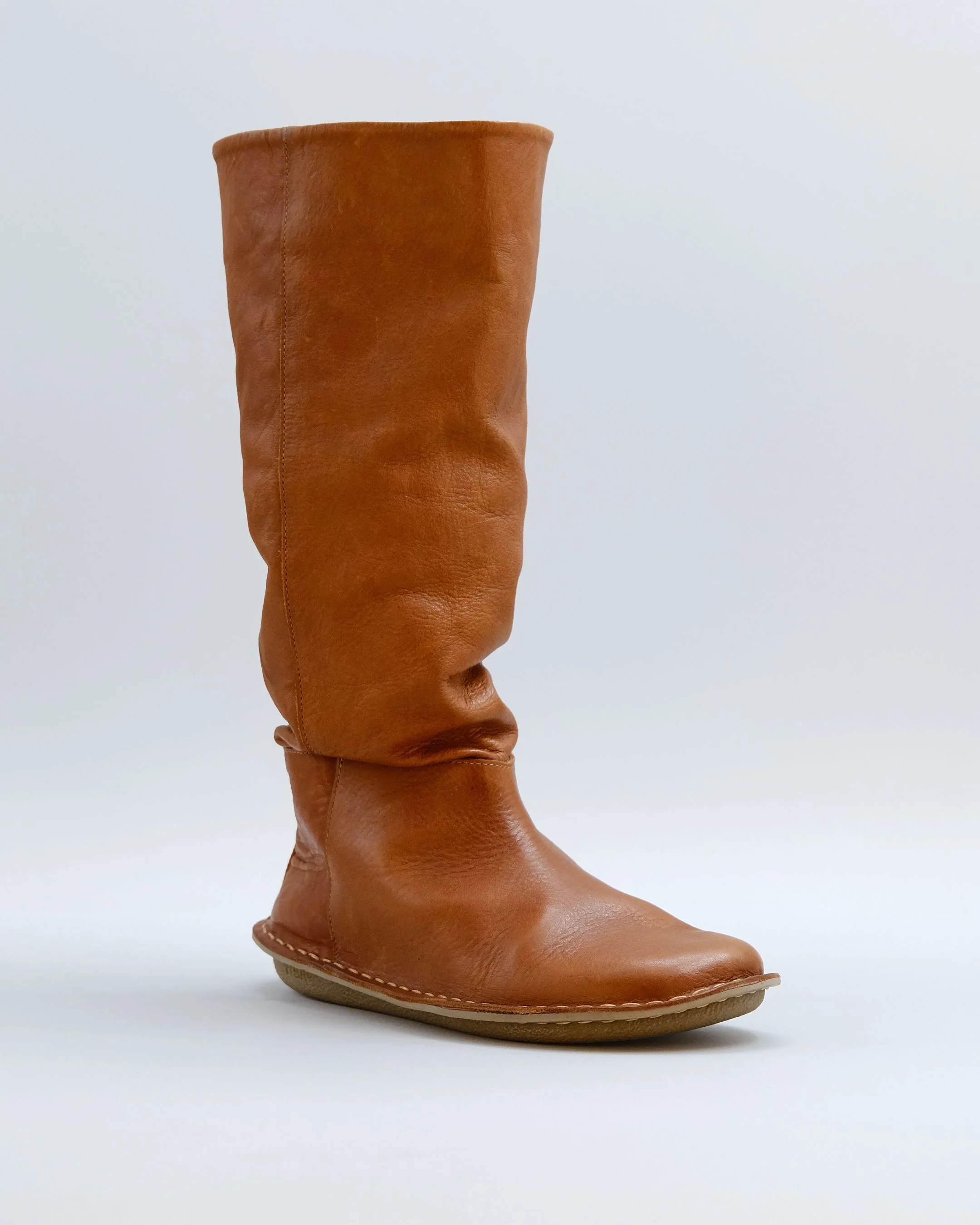 A taller take of our iconic HELSINKI boot, made for year-round adventures. Crafted from soft leather with a relaxed, slouchy look, these ergonomic and comfortable under-knee boots are stylish, versatile, and easy to wear thanks to the side zipper. From city strolls to countryside escapes, WOODSTOCK molds to your feet and fits effortlessly into any outfit and every day. The height of the shaft (from bottom of the foot to top of the boot) is approx. 37.5 cm.